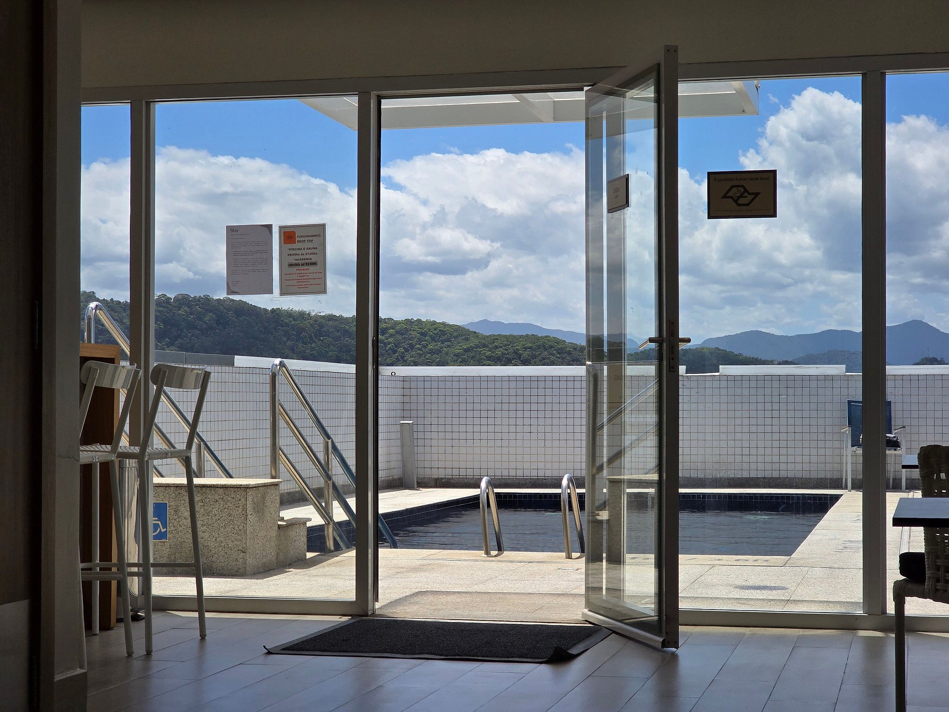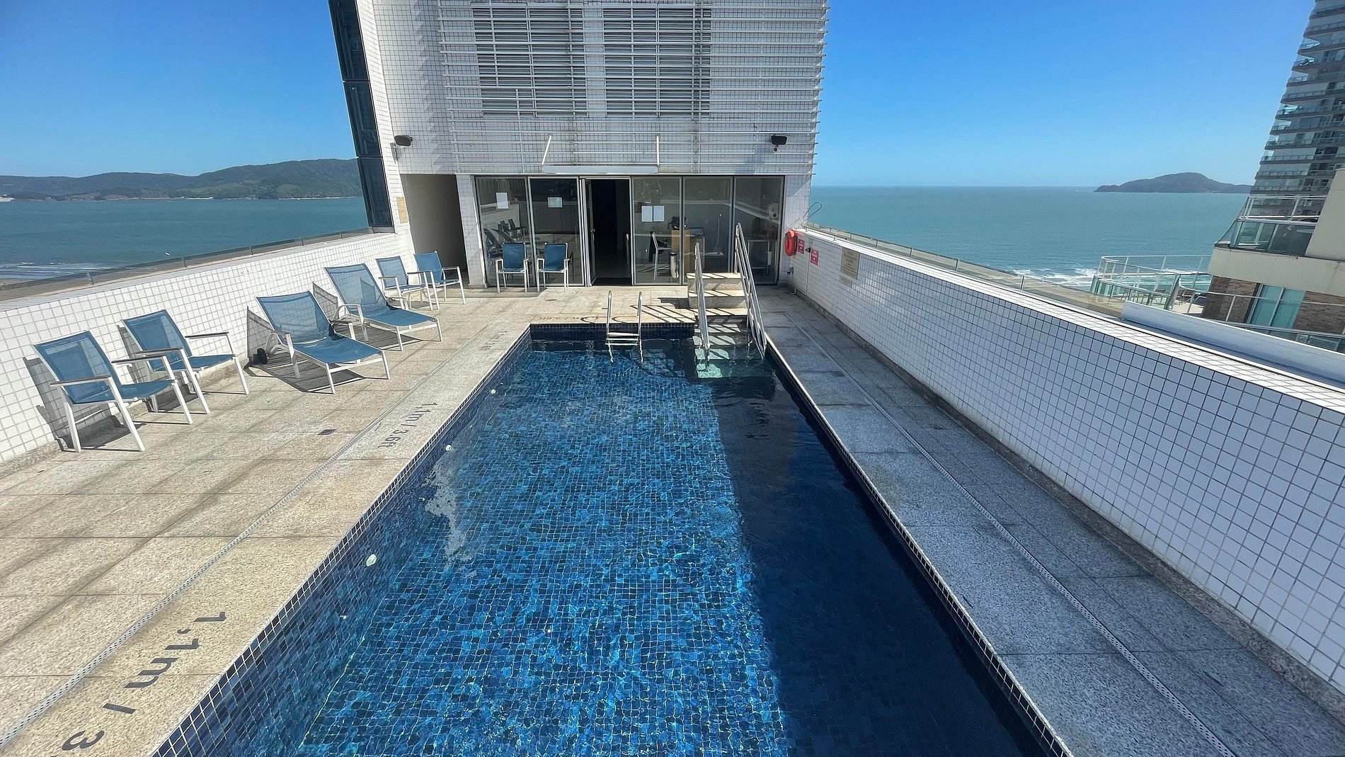 * Piscina na cobertura com vista espetacular da cidade e do mar